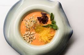El truco en este punto es servir los platos como si fueran obras de arte. Simplemente imagínate un gazpacho de pimientos del piquillo de un color teja vivo, con unos tomatitos macerados y decorado con algunas ramitas de perijil. Todo esto servido en un bol color verde creando una combinación de colores explosiva. Estoy segura de que querrías sacarle una foto.